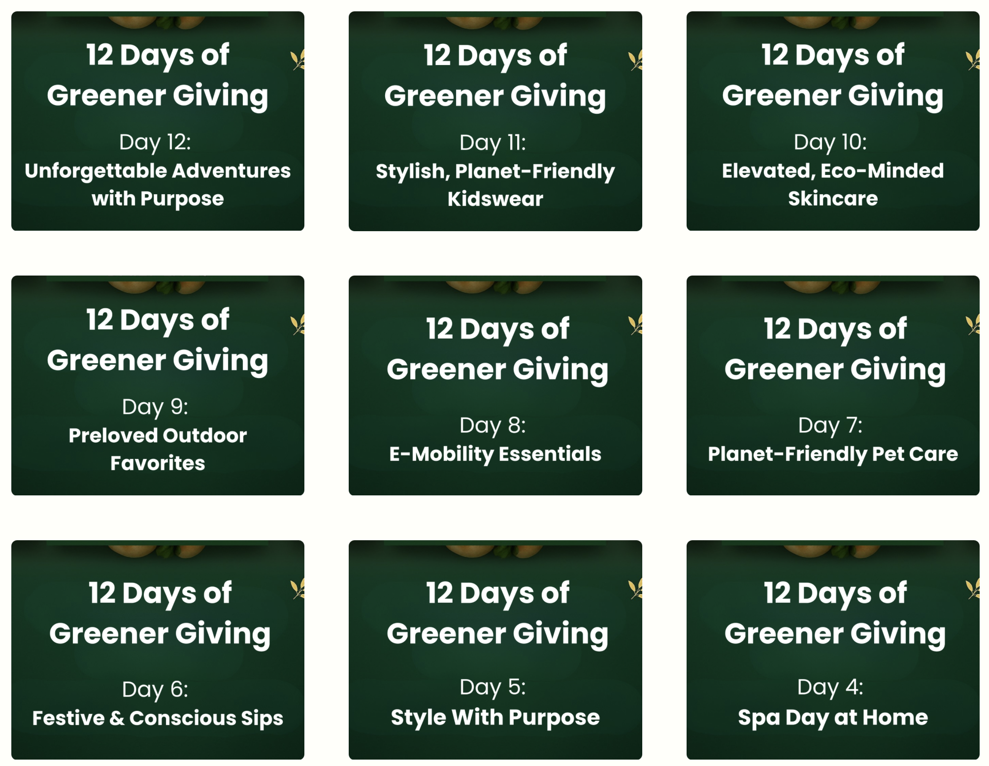 12 Days of Greener Giving: A festive holiday series spotlighting planet-friendly gift ideas across categories, helping consumers discover better options without sacrificing joy or usefulness.